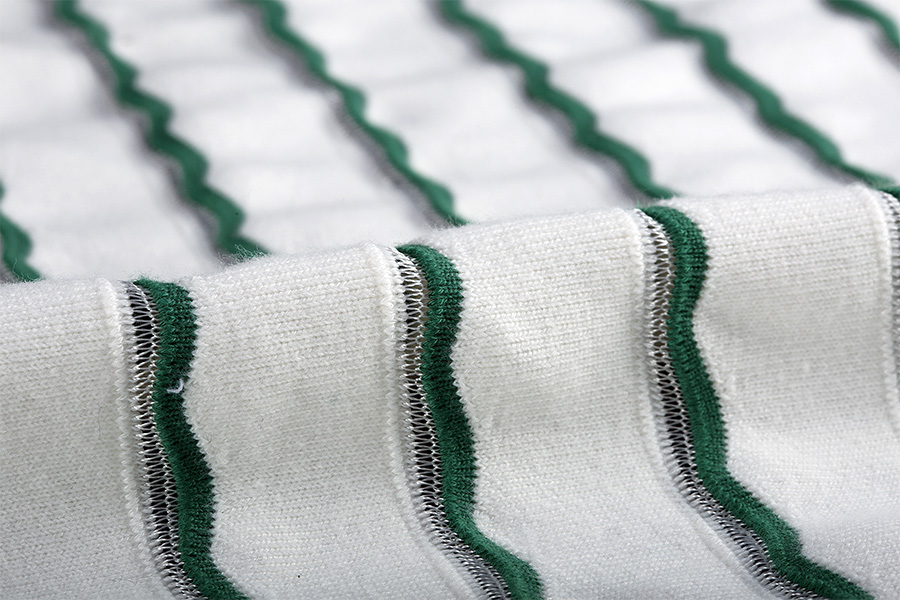 Teknologi Collar Rib memberi desainer pilihan desain yang lebih kaya dan beragam. Desain garis leher tradisional relatif monoton, namun pengenalan teknologi Collar Rib membuat desain garis leher lebih fleksibel dan mudah diubah. Desainer dapat memilih berbagai jenis Kerah Rib sesuai dengan gaya dan posisi pakaian, seperti garis tipis, garis tebal, pola silang, dll., sehingga menambah lebih banyak mode dan personalisasi pada pakaian.