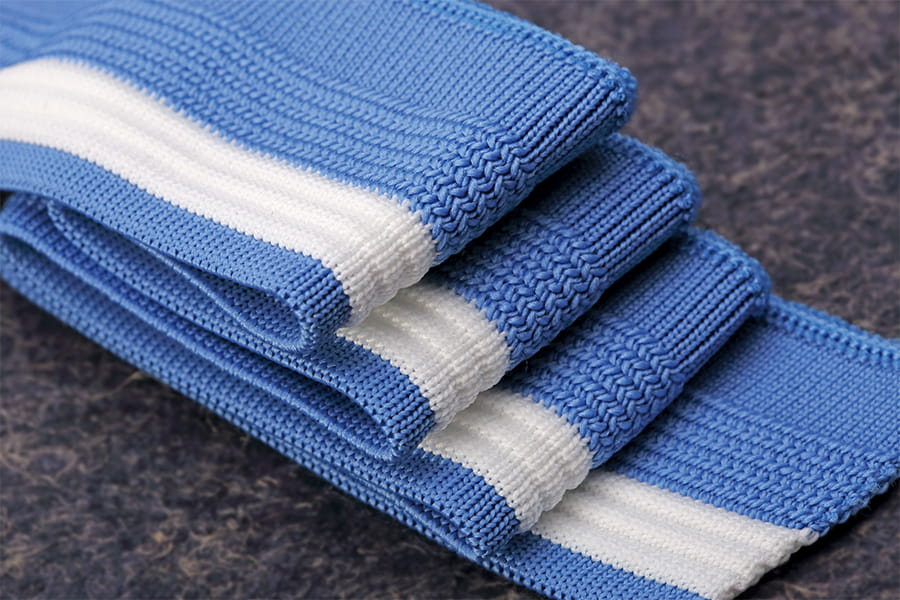 Rajutan:Benang akrilik bertekstur kemudian dimasukkan ke dalam mesin rajut, lalu dirajut menjadi kain bergaris. Mesin rajut diatur untuk menghasilkan pola berusuk yang khas, yang terdiri dari barisan jahitan yang dinaikkan dan diturunkan secara bergantian. Konfigurasi spesifik mesin rajut menentukan lebar dan desain ribbing.